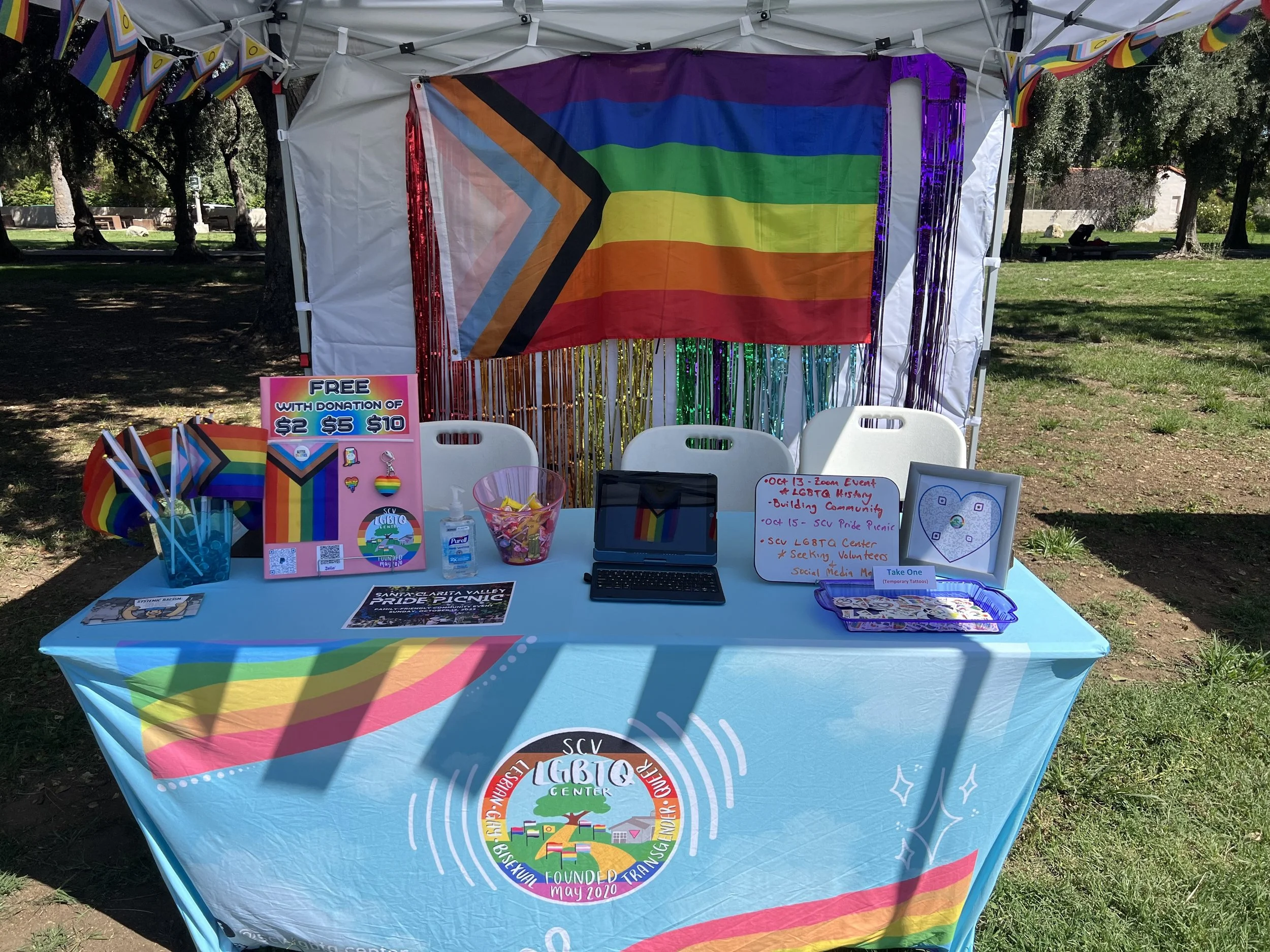 Queer SCV—with some help from PFLAG of SCV and the generous sponsorship of Boston Scientific—organized a pride picnic at Dr. Richard H Rioux Memorial Park in June of 2019. Attracted many LGBTQ and non-LGBTQ residents, the picnic was a smashing success and a huge step in bringing awareness and community to the LGBTQ people of Santa Clarita.